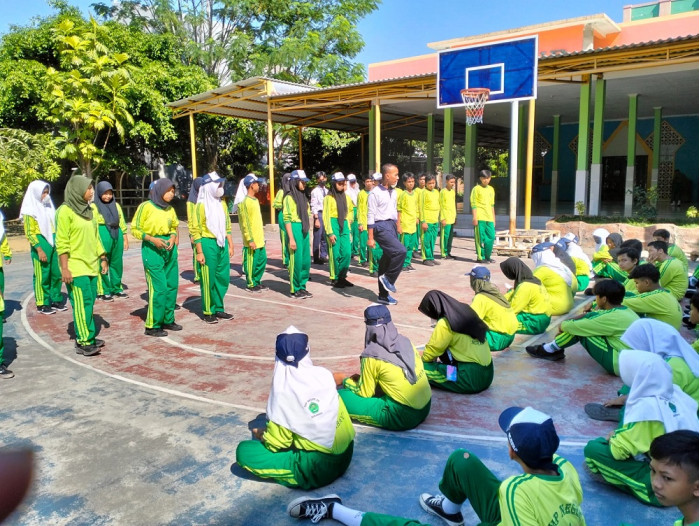 Pelatihan baris bebaris kelas 8 yang dilatih anggita Marinir Karangpilang