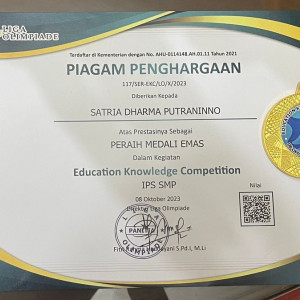 Satria Dharma Putraninno Kelas 7A Juara 1 peraih Medali Emas Olimpiade IPS Tingkat Nasional Pihak penyelenggara liga olimpiade Tanggal pelaksanaan