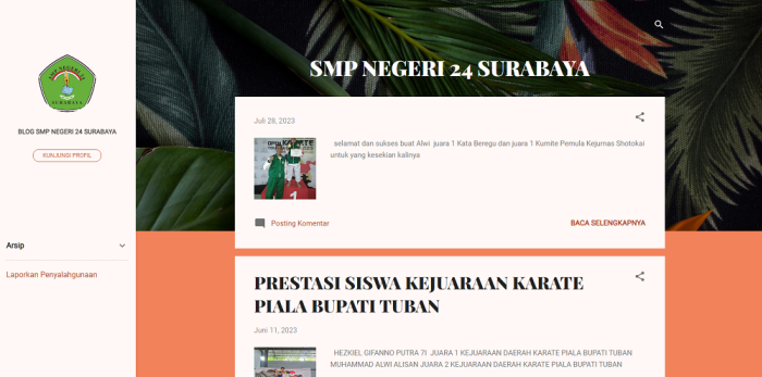 SMPN 24 Surabaya menggunakan Blogger untuk publikasi kegiatan sekolah. Blog resmi SMPN 24 Surabaya dapat diakses di sini